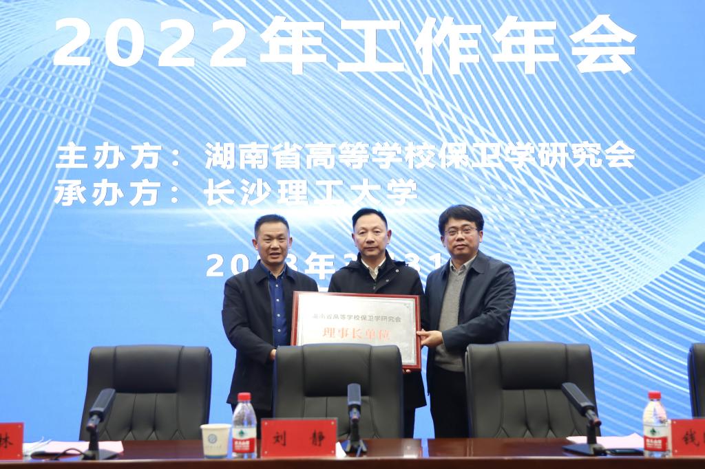 会议推选长沙师范学院为省高等学校保卫学研究会第八届理事会理事长单位,现场举行了工作交接仪式。黄快林作表态发言,对担任新一届理事长单位倍感荣幸,将牢记初心使命,奋力跑好“下一棒”。