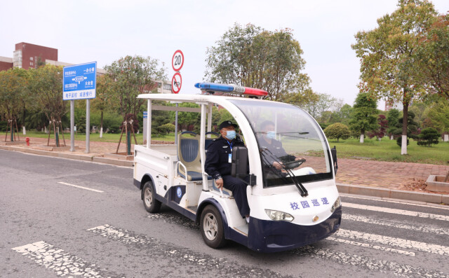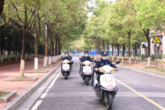 保卫干部们24小时不间断校园巡逻