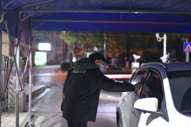随着疫情的发展,封控区、管控区在不断的增加、变化,时有入内人员在门岗扫码时发现被赋黄码,甚至红码。“发现异常行程码、健康码的学生立即联系学院送往指定隔离点,如果是老师就劝返回家隔离并报防控办。外来人员一律严禁入内,我们还会报社区备案。”西门门岗负责人之一张楷元和队友摸索出一套行之有效的处理流程。遇到拒不配合的闯关者,他们也总是冷静克制的严肃处理,“但坚决要守住第一道物理门。”张楷元说。