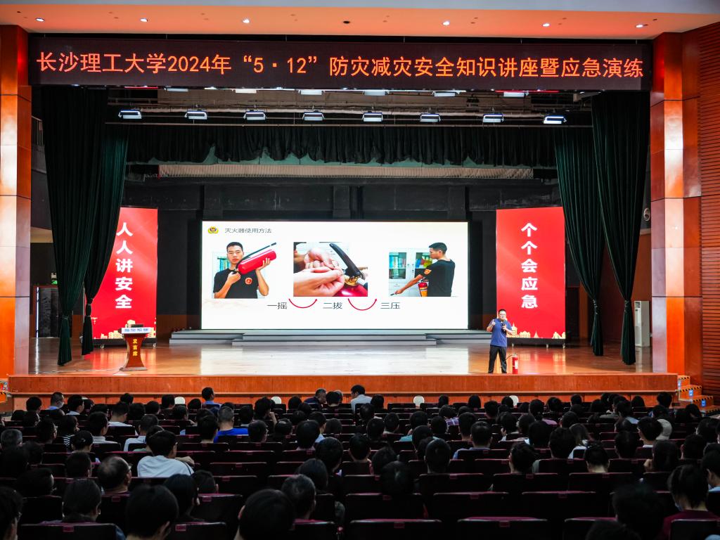 5月16日下午,MG冰球官网2024年“5·12”防灾减灾安全知识讲座暨应急演练活动在云塘校区大会堂隆重举行。副校长钱国平,天心区消防救援大队、长沙市公安局特巡警支队天心大队经开区中队、长沙市公安局天心分局暮云派出所、天心区暮云街道办事处及卢浮社区等单位的领导嘉宾出席活动,校属各单位1000余名师生员工代表参加活动。