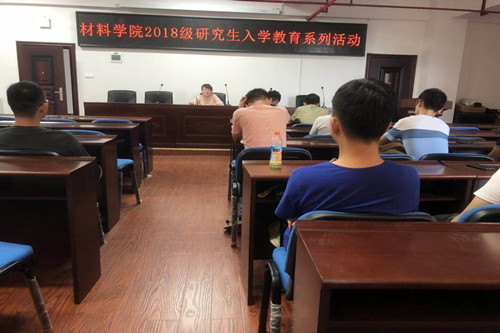 9月14日,材料学院在新能源大楼一栋A302举行2018级研究生入学教育系列活动”之“专业知识讲座科研与研究生干事何小勇、研究生辅导员陈鑫林出席会议,2018级全体研究生新生参加。