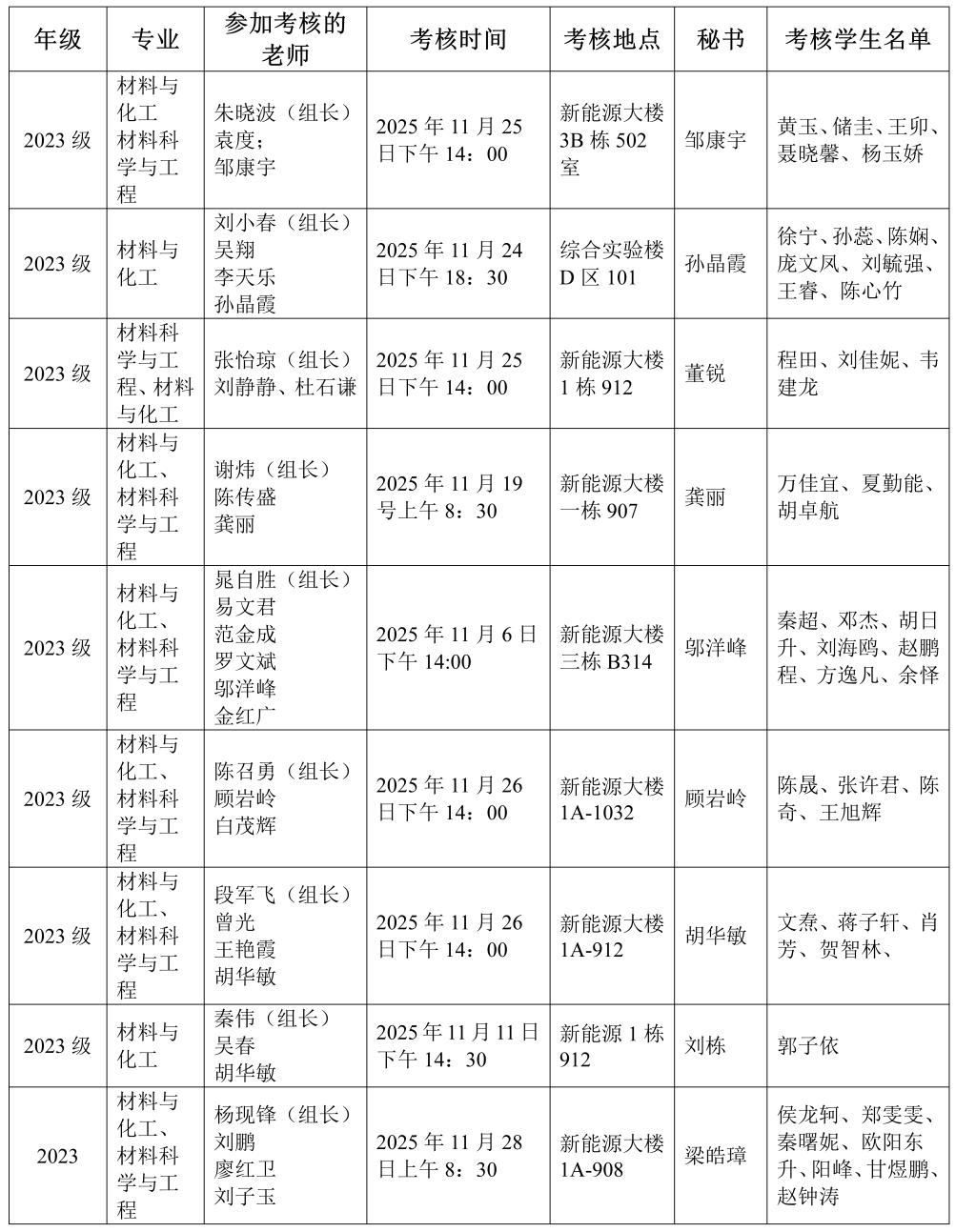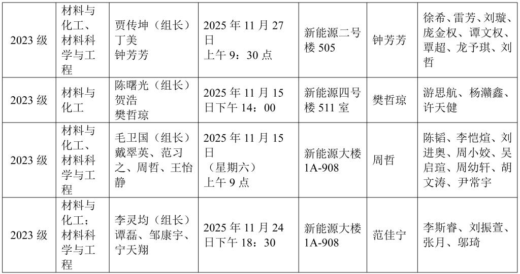 材料科学与工程学院2023级研究生中期考核安排表