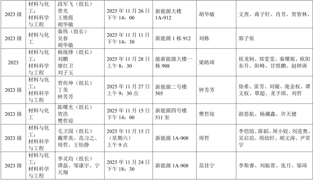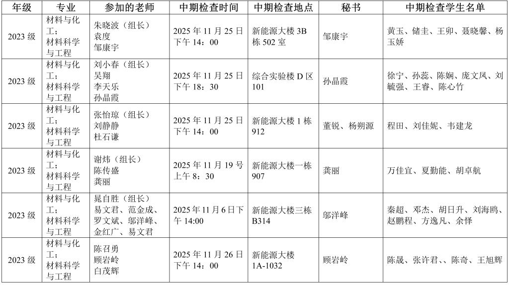 材料科学与工程学院2023级研究生学位论文中期检查安排表(二)