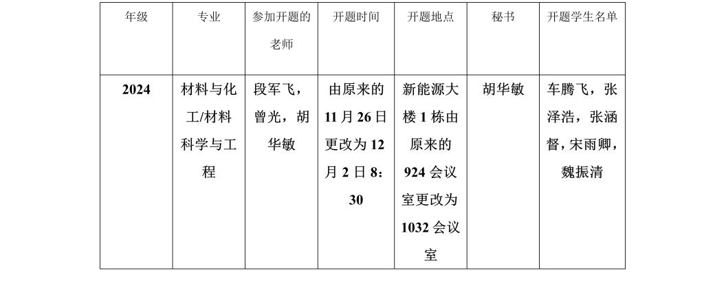 材料科学与工程学院研究生2024级学位论文开题安排表