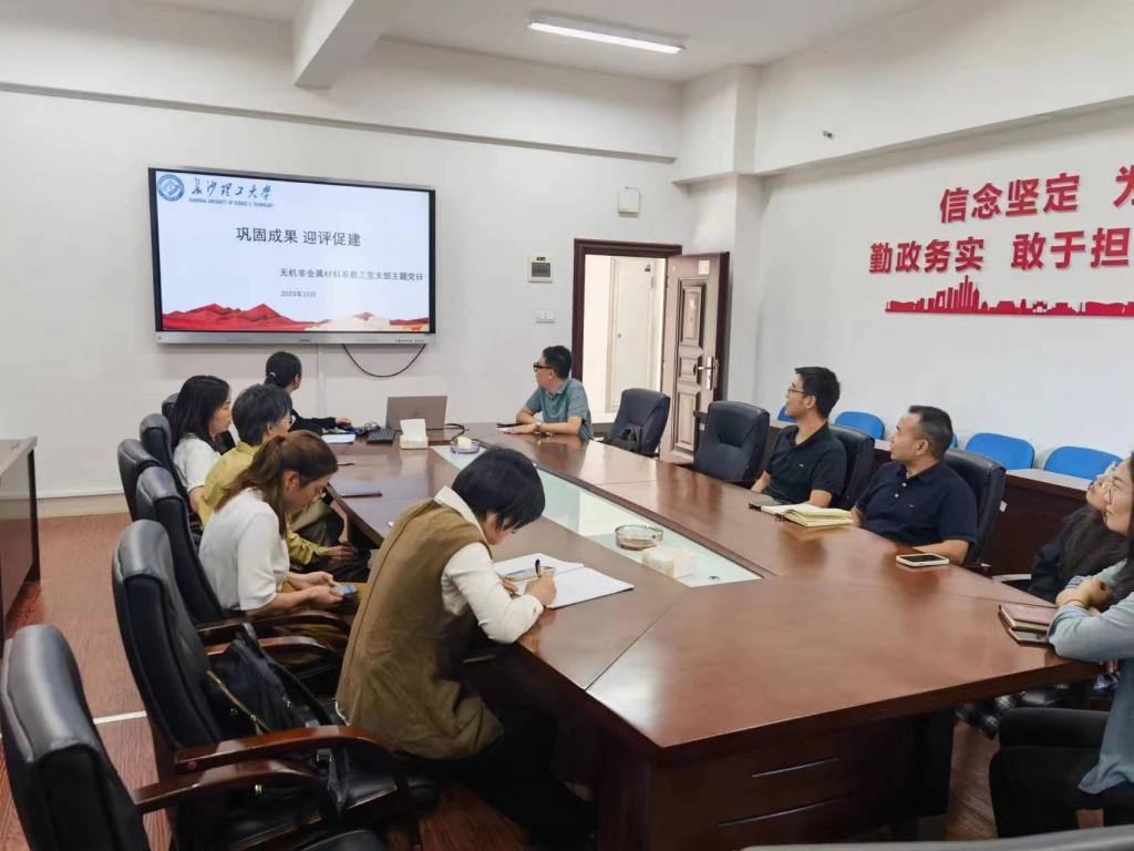 2023年10月17日下午,无机非金属材料系教工党支部在新能源大楼1-317举行主题党日活动,以“巩固成果 迎评促建”为主题。活动由支部书记易文君主持,支部成员参加。