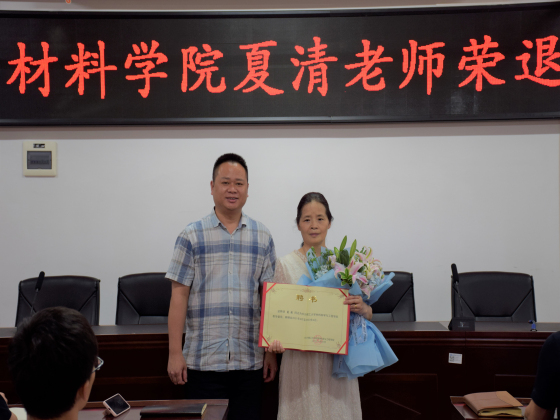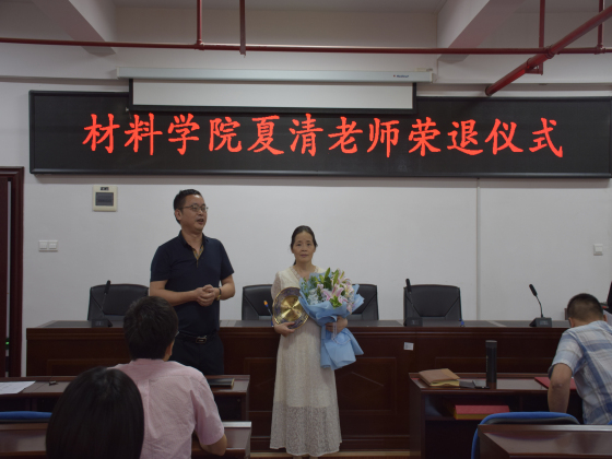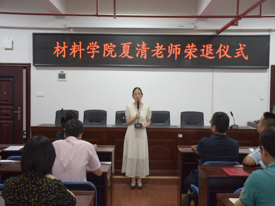 6月8日下午,材料学院在新能源大楼1-302为学院无机非金属材料系的夏清老师举行了光荣退休仪式,会议由院党总支副书记、院工会主席陈华主持,学院全体教职工参加了荣退仪式。