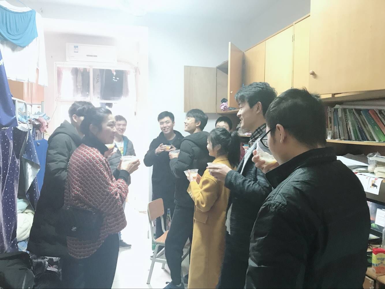 首先,他们来到了大四的寝室,在给他们送上汤圆的同时也了解到大家的考研状况和接下来的打算,为大家复试,调剂和就业方向做初步的指导。紧接着来到大三年级的寝室,和大家亲切交谈,热闹的度过元宵节。最后,在热情的大三学生的陪伴下,老师们又给大二大一的学弟学妹们送去了温暖,场面其乐融融,十分温馨。