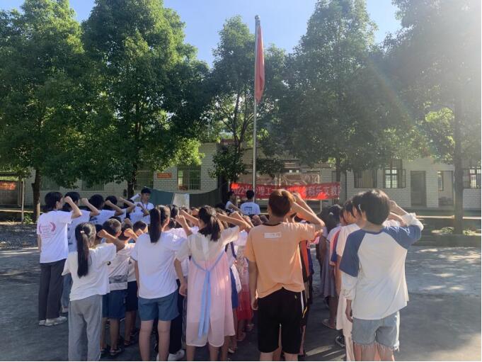 “青春展芳华,情暖山区留守娃”。7月11日,MG冰球突破官网拓荒者支教队赴湘西保靖县科乐村为山区孩子举行升国旗仪式。