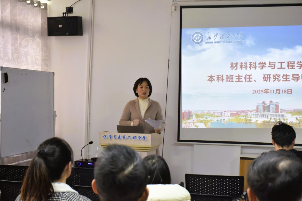 11月18日下午,材料科学与工程学院在工科楼三号楼B448和B319教室举行本科班主任与研究生导师培训会。会议聚焦学生教育培养与心理健康教育两大主题,由学院党委副书记邵巧艳、副院长谢炜教授及校心理健康教育中心主任易敏担任主讲,全院班主任和研究生导师参加。