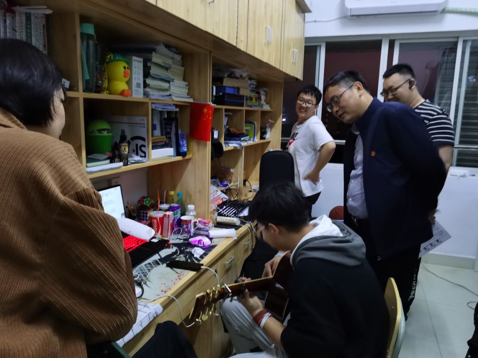 每走进一个宿舍,张国强都亲切地与学生进行交谈,了解同学们思想、学习和生活情况,帮助他们答疑解惑,接纳同学们提出的建议。他指出宿舍既是同学们学习生活的地方,也是交流思想、促进情感的重要场所,干净整洁的宿舍环境既能较好的反应出同学们的精神风貌,也是学校养成教育的重要体现,同学要将良好的行为习惯变成一种态度,一种好的生活方式。他还鼓励同学们在四六级考试、考研上多下功夫,希望同学们要珍惜当下,合理规划,勤奋求知,勤思善悟,努力成为勤学善思的新时代大学生。