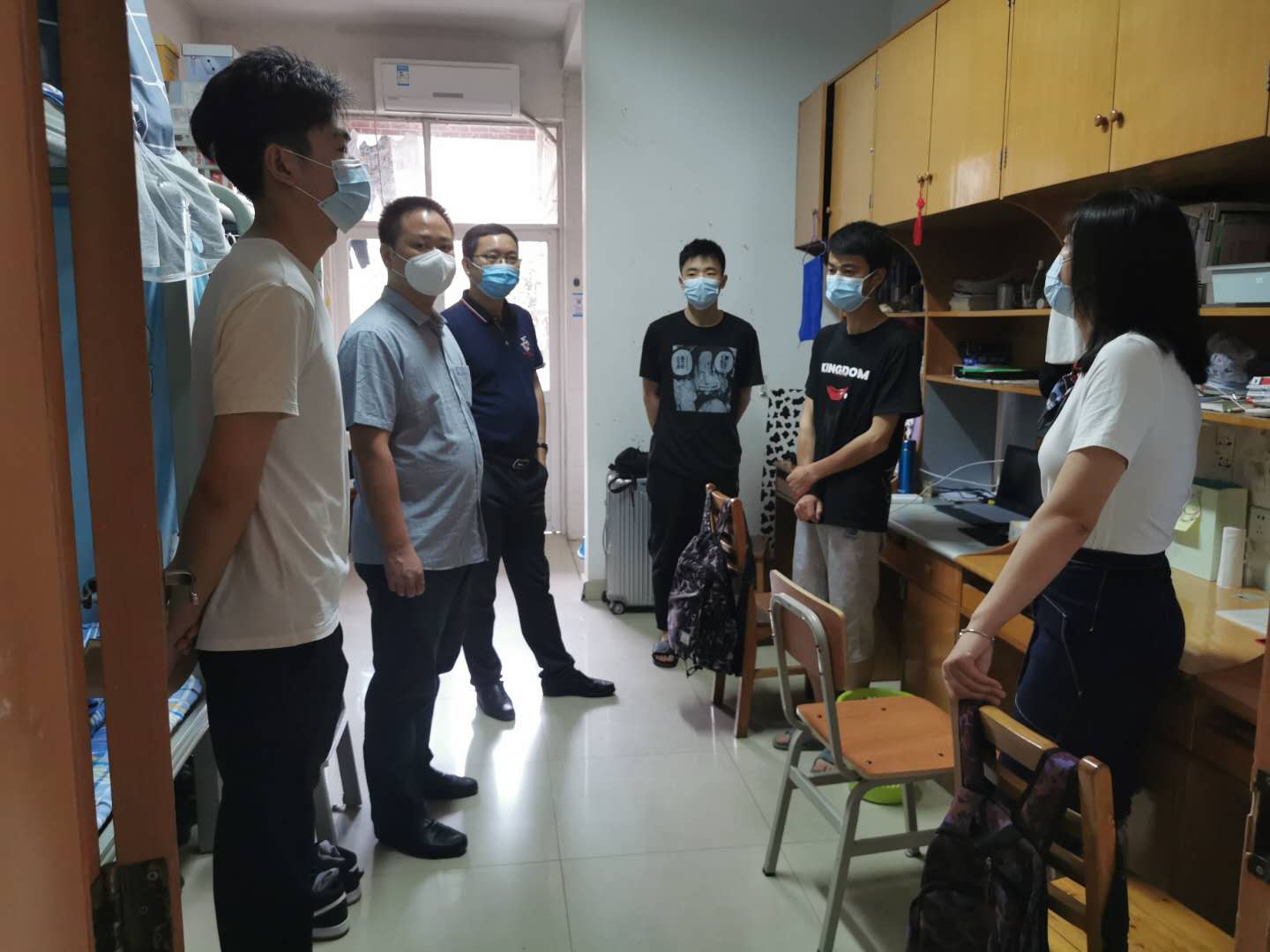 5月22日,材料学院党总支书记张国强、院长毛卫国、党总支副书记唐青和全体辅导员深入各寝室看望返校毕业生。