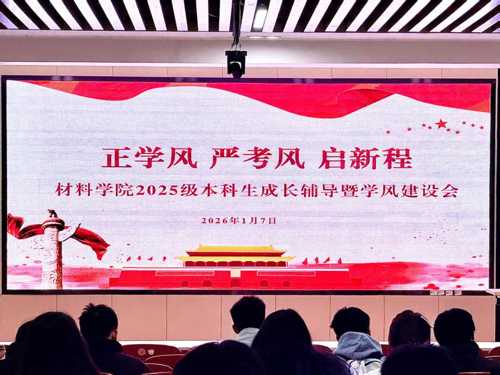 为进一步加强学风建设,强化考试诚信教育,引导学生明确学习目标、改进学习方法,1月7日,材料学院于云塘校区工科三号楼A201会议室召开2025级成长辅导暨学风建设大会。2025级辅导员杨宁及2025级全体学生参会。