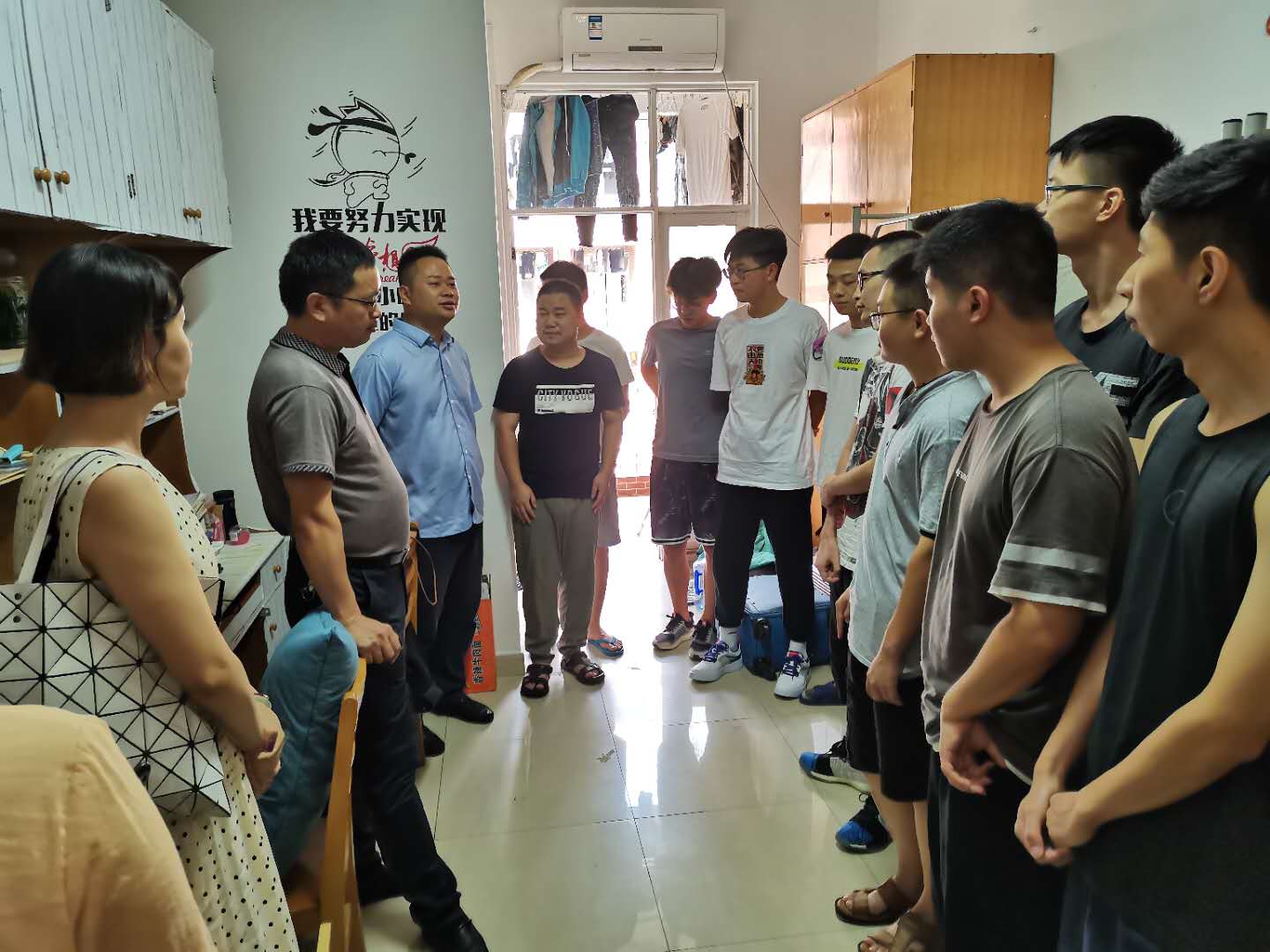 为全面深入细致地了解学生秋季学期开学报到情况,8月23日上午,院长毛卫国、党总支书记张国强、副书记陈华以及全体辅导员深入学生宿舍,实地了解学生情况,并送上学校的关心和关怀。
