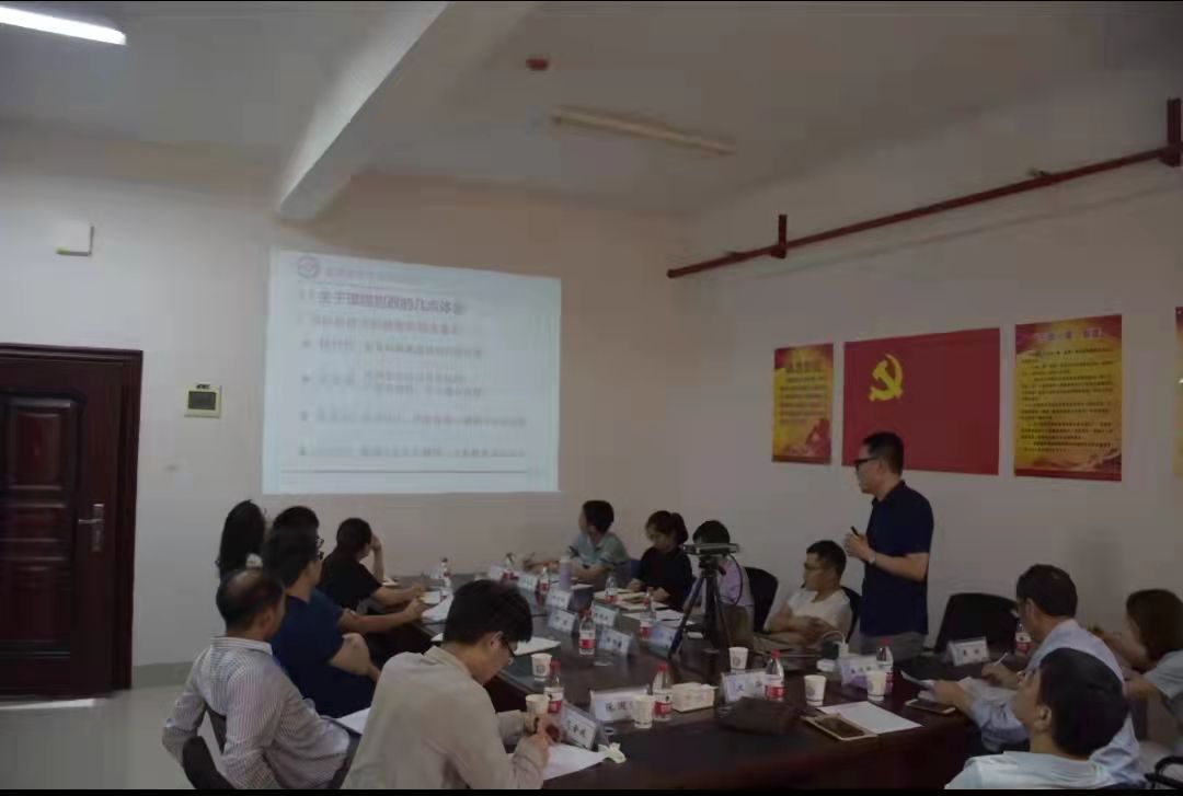首先,龚丽老师介绍了出席本次会议的领导和嘉宾,并对本次研讨会做了简单介绍。然后学院张国强书记发言,张书记简单介绍了我们新能源材料与器件专业和本次会议的中心思想,并提出了两点希望:1)推进本专业特色建设;2)加强课程思政建设。在接下来的环节中,我院刘鹏老师根据自己金课建设的实践与体会从三个方面分享了自己宝贵的教学经验和体会:1)怎样做好教学设计,2)如何体现“两性一度”,3)如响融入“课程思政”。融入课程思政的目标是实现价值塑造、知识传授与能力培养相统一,可以通过以下三条途径来实现:1)掘课程思政无素,2)融思政于课堂教学,3)反思教学效果。刘鹏老师分享完后,系里教学经验丰富的教授及课程深受学生欢迎的老师们也各抒己见,分享了各自的教学经验和方法。
