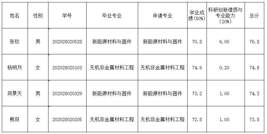 现予以公示,公示期为2023年9月21日至2023年9月23日。如对以上名单有异议,请实名与材料科学与工程学院教务办联系,联系电话:0731-85258487,联系人:李老师,电子邮箱:851187698@qq.com。