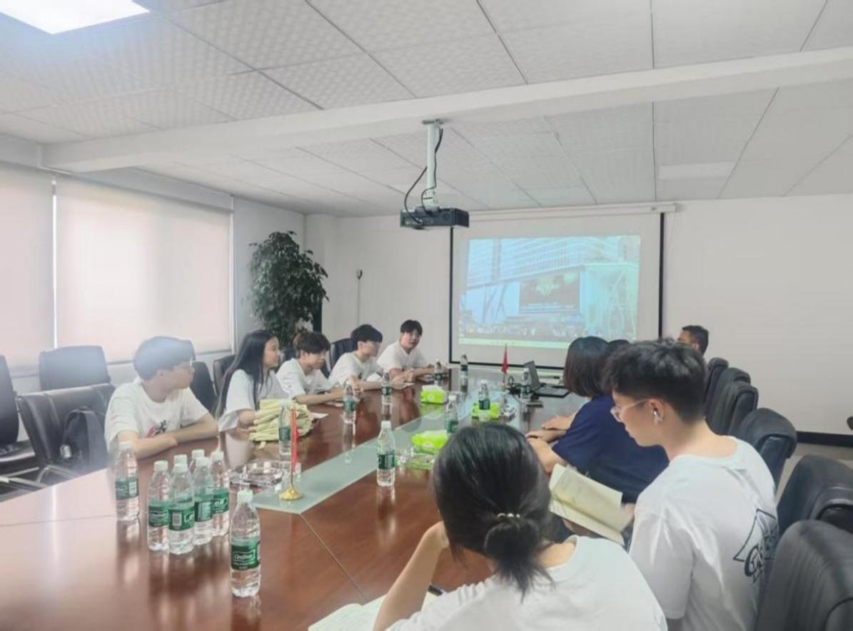 在此次实践活动中,湖南新生代生产负责人彭卫祥陪同实践团成员一道参观公司文化墙、生产车间,并开展座谈。