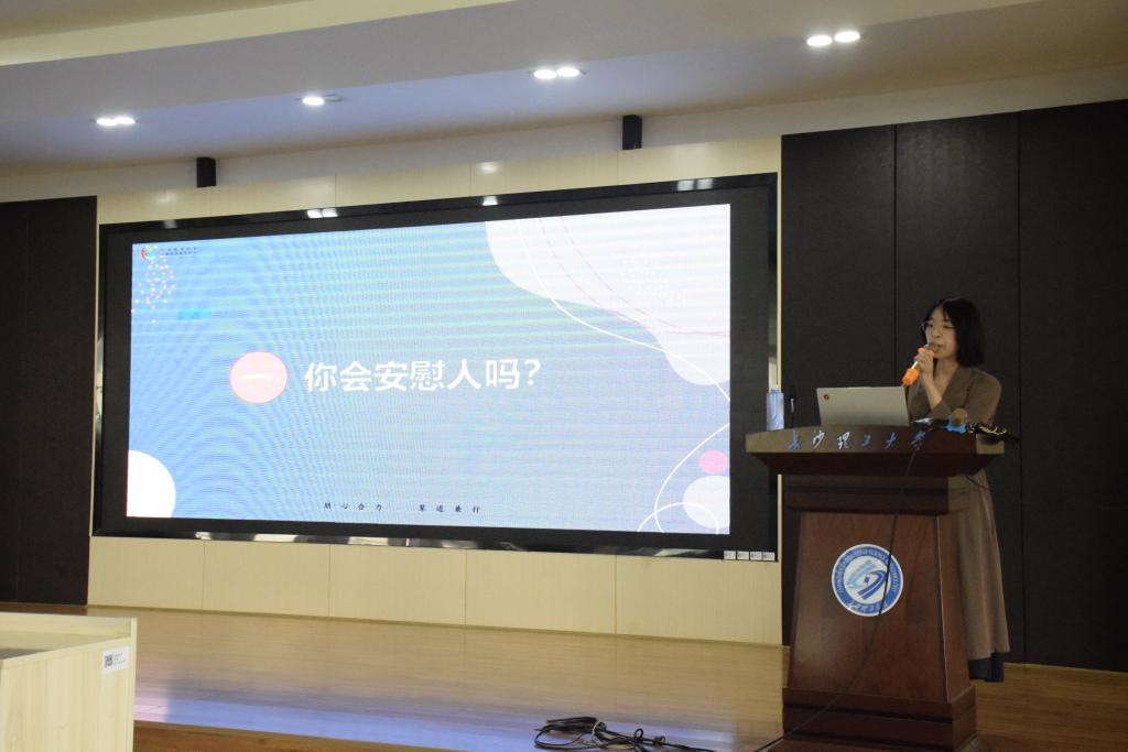 在此次会议上卢老师首先明确了朋辈心理互助员的“四合一”工作角色定位。接着,卢老师深入剖析了安慰常见误区,并结合有趣的漫画和生动的案例,介绍了“表达支持关心、适当询问细节、看见对方感受、陪在对方身边以及协助对方行动”等五个关键技巧。在传授技巧的同时,卢老师还强调了真诚在心理互助中的重要性。
