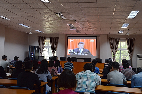 5月4日上午,城南学院党委组织在院领导、教工党员和部分学生在二教会议室全程观看习近平在纪念马克思诞辰200周年大会发表的重要讲话现场直播。