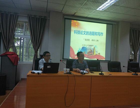 5月11日下午,城南学院在金盆岭二教大会议室组织召开“科研论文写作规范与选题指导”主题报告会,《MG冰球突破官网学报》编辑部主任兼科研部副部长陈浩凯教授主讲。院长赵华教授、全体学工人员参加报告会,会议由院党委副书记王明彦主持。