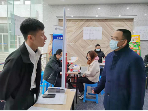 招聘会期间,院党委书记黄自力、院长赵华深入招聘会现场,与用人单位代表亲切交流,了解单位需求,并对参会学生进行就业指导。