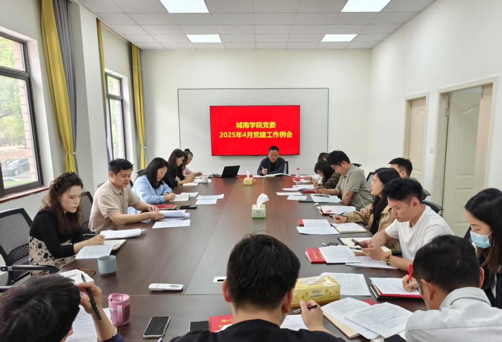 4月9日下午,城南学院党委在2教220会议室召开党建工作例会。会议由学院党委书记施一满主持,党委副书记陶双、纪委书记曹志明及全体师生党支部书记参加。