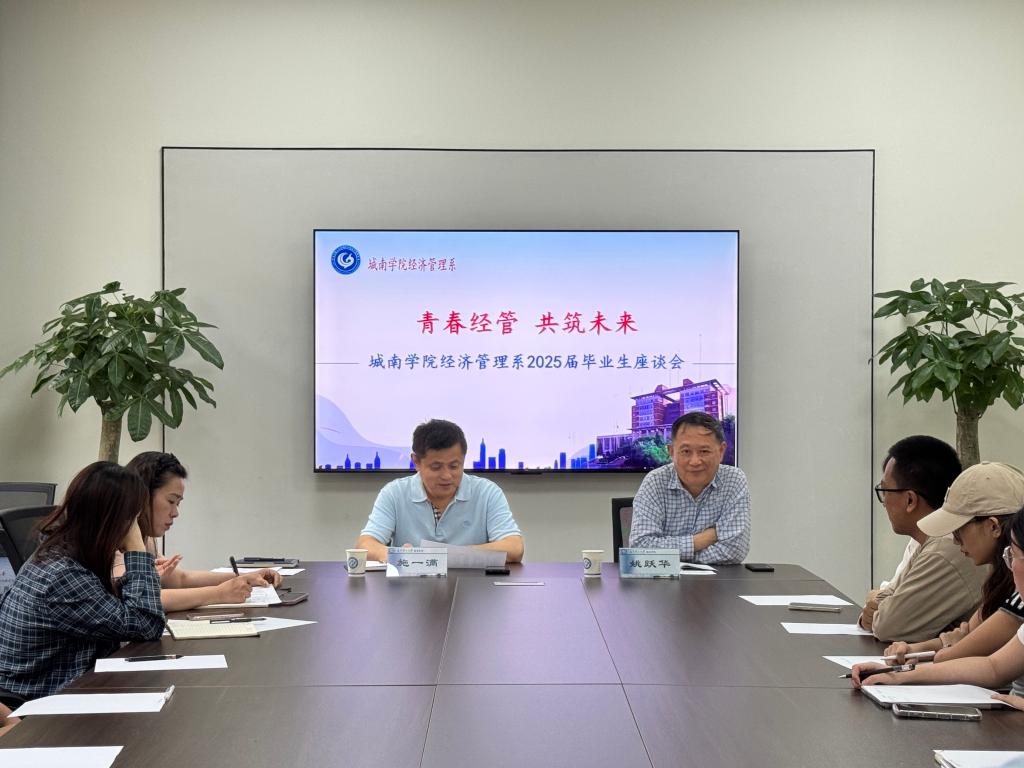 5月28日,城南学院经济管理系“青春经管,共筑未来”2025届毕业生座谈会在2教221会议室举行。学院党委书记施一满、关工委常务副主任姚跃华,经济管理系全体辅导员,2025届毕业生代表及其他年级学生齐聚一堂,共话成长与未来。