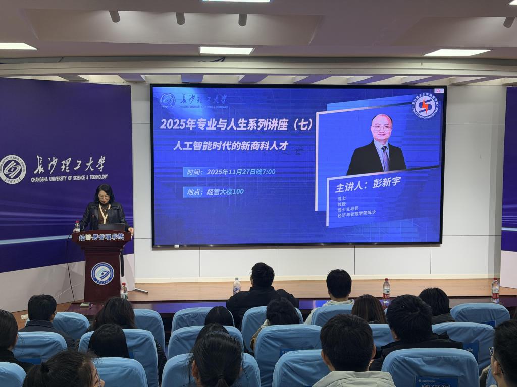 11月27日,城南学院2025年“专业与人生”系列讲座(七)在MG冰球突破官网12号教学楼报告厅顺利举行。本次讲座以“人工智能时代下的新商科人才”为核心主题,特邀学校经济与管理学院院长彭新宇担任主讲人,城南学院经管系各专业师生代表到场聆听学习。