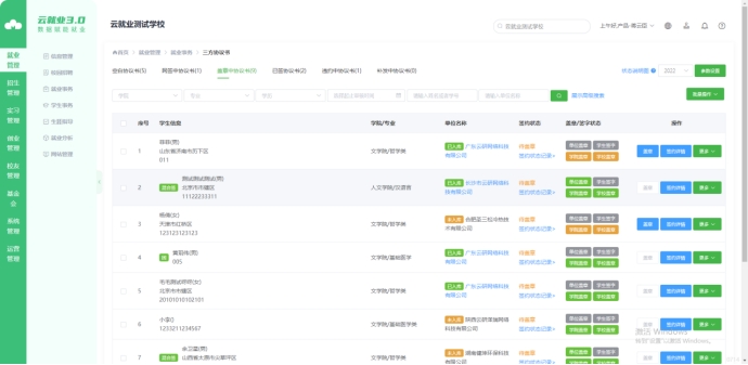 当单位邀约学生并被应约后或学生发起签约(学生发起三方时单位不用应约)时,老师可在【网签中协议书】进行审核;