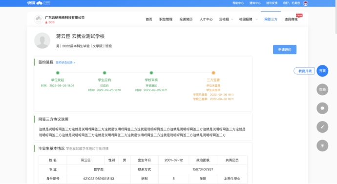 a)登录【云校招】-【三方协议】模块