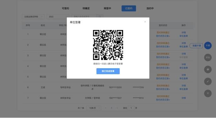 当学校审核通过并发起腾讯电子签后,单位可以两种方式腾讯电子签小程序进行签约;