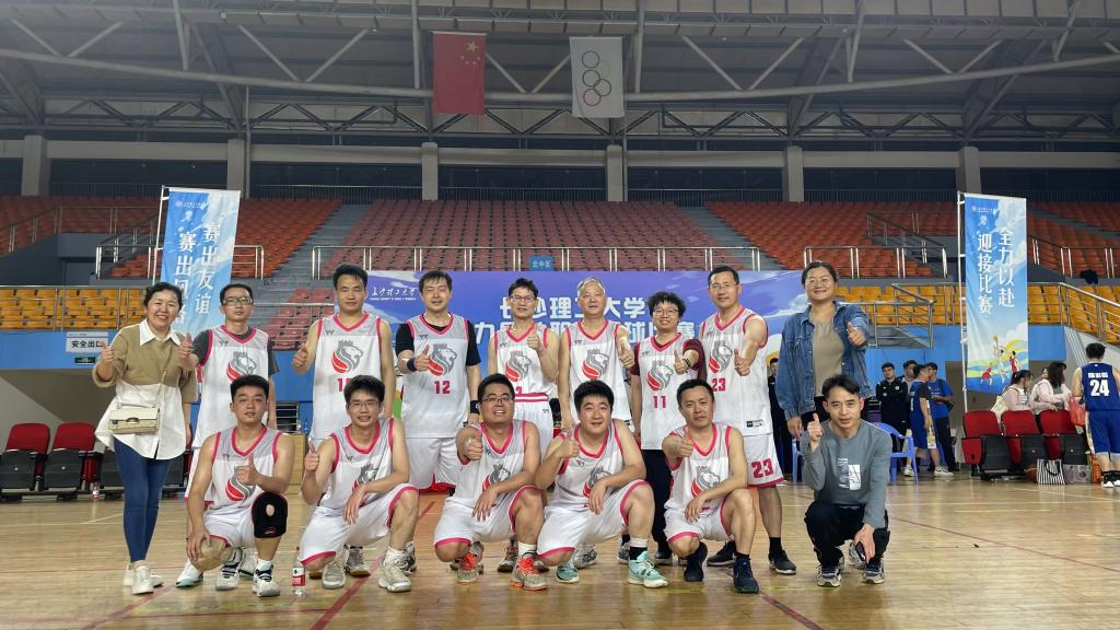 我院派出朱广峰、肖义慧、王志鹏、杨志凯四名老师与经管学院联合组队参赛。在23日晚B组淘汰赛仅剩3秒的情形下,肖义慧在己方半场的超远距离远投进球,赢得了宝贵的3分。
