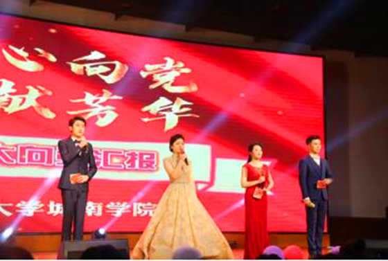 6月18日晚,为庆祝中国共产党百年华诞,城南学院“青春心向党 魅力献芳华”魅力女大学生汇报演出在五教大礼堂火热展开。学院党政领导、全体辅导员、关工委老师以及学院千余名学子观看表演。迟瑞、贺一朗、闫宏旭、王浩宇担任主持人。