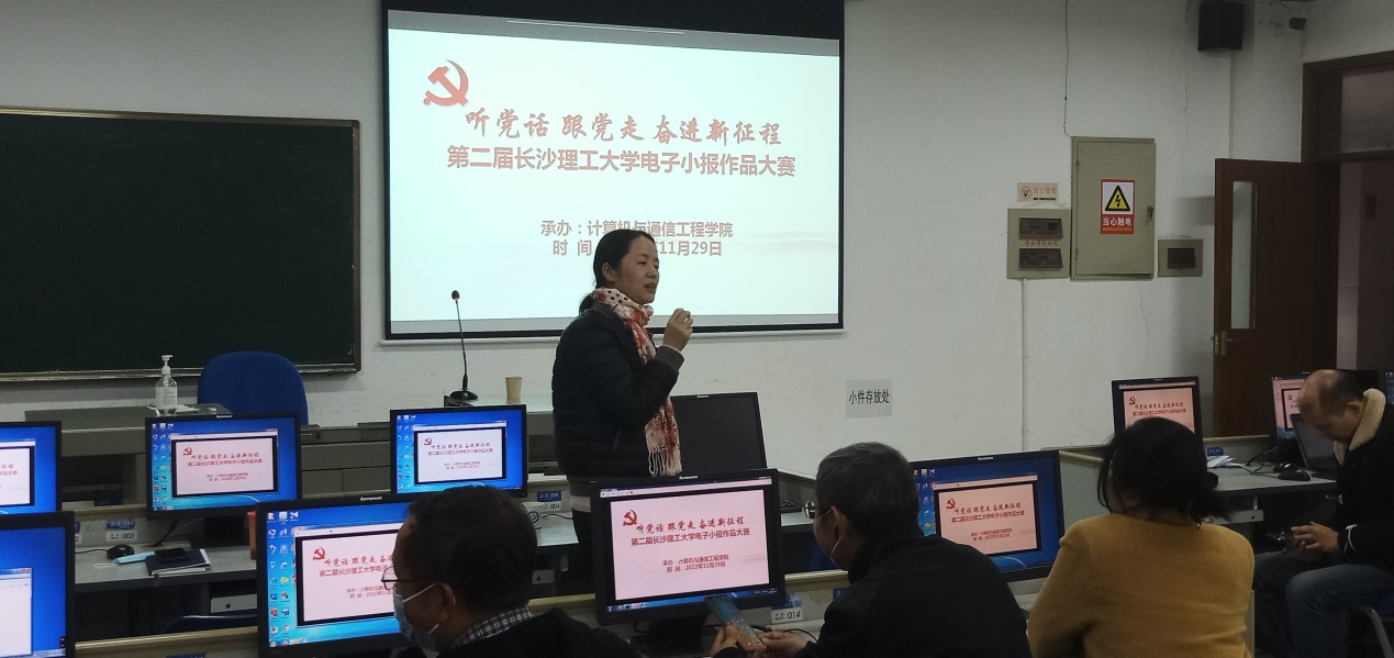 为全面落实立德树人根本任务,将课程思政的理念融汇于专业知识的教学当中,将马克思主义信仰、共产主义信念、爱国情怀、奋斗精神和湖湘文化红色基因与《计算机与程序设计基础》、《计算机基础与 Excel 数据分析》、《计算机基础与多媒体技术》、《计算机基础与应用》等课程学习有机结合。 11月29日下午,计算机基础系列课课程思政实践暨“听党话 跟党走 奋进新征程”第二届MG冰球突破官网电子小报作品评选决赛在综合实验楼机房成功举行。