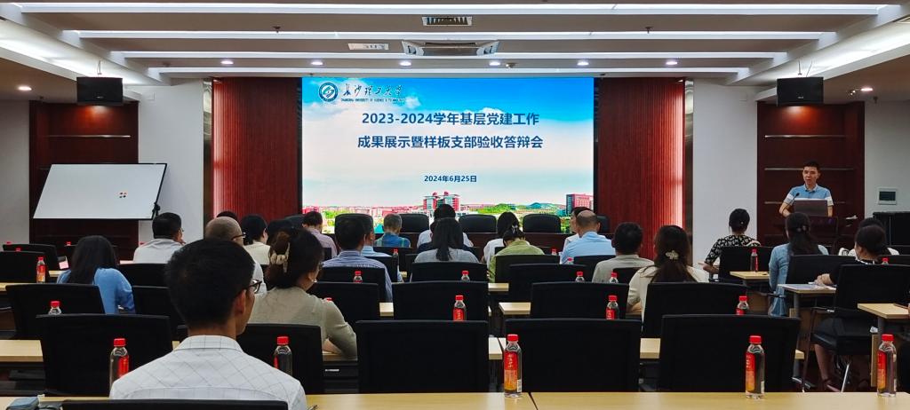 2024年6月25日,MG冰球官网2023-2024学年基层党建工作成果展示暨样板支部验收答辩会在图书馆102报告厅举办。特邀专家王乃厚、张可荣、胡秀英、郝海霞、李祝平、刘东奇出席并任评委,教工样板党支部书记、各二级党组织组织员、党务主任(干事)等60余人参会。会议由组织部副部长、党校副校长王煜坤主持。