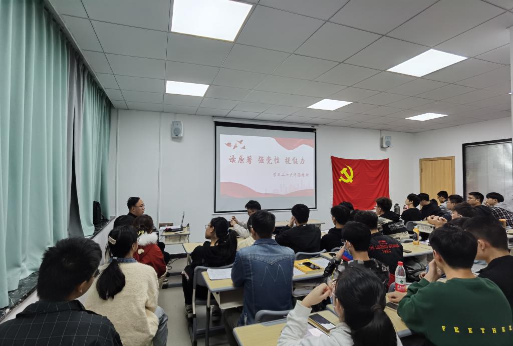 10月30日晚,汽机学院智能制造系副主任、副教授周小杰老师应邀于行五105教室,与学员们共同学习党的二十大报告。本次研读活动由培训班班长段金宏主持,第二十六期预备党员培训班全员参与。