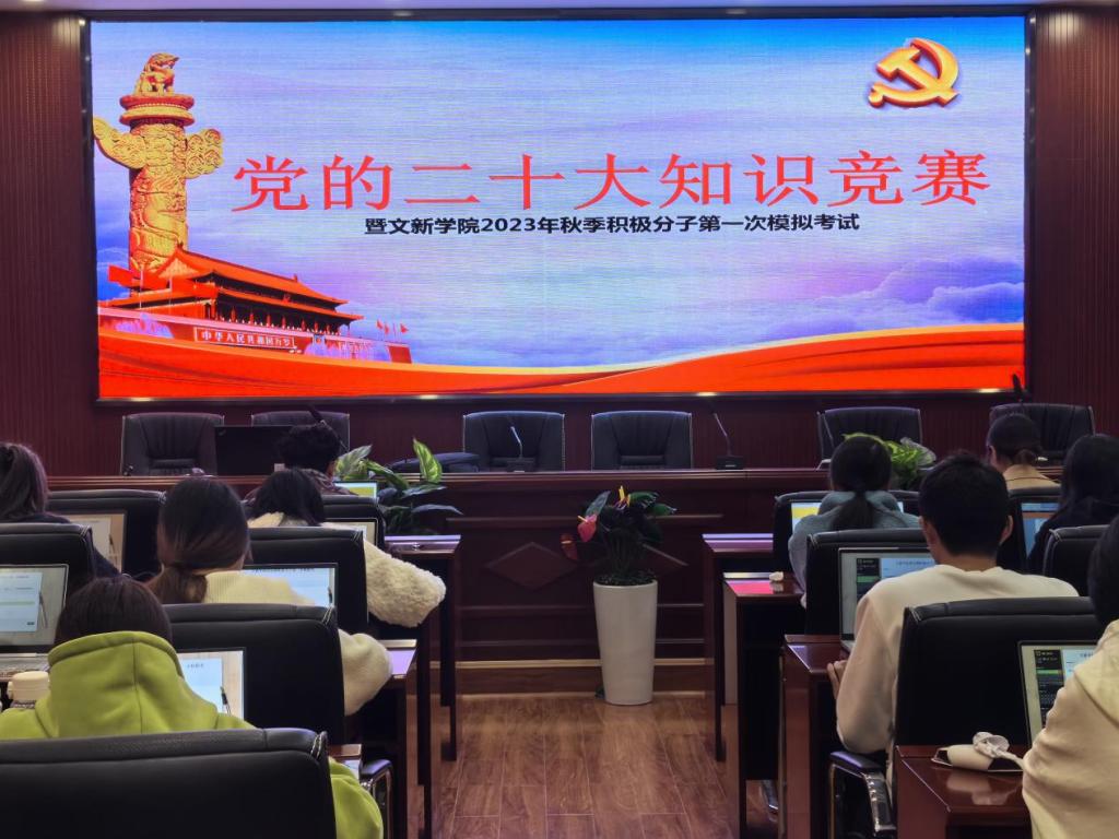 为深入落实并贯彻落实党的二十大精神,积极探索“互联网+党建”的新模式,进一步提升积极分子的理论知识能力水平,11月20日12时30分,“党的二十大知识竞赛暨文新学院2023年秋季入党积极分子第一次模拟考试”于MG冰球官网金盆岭校区九号教学楼218室成功举行。