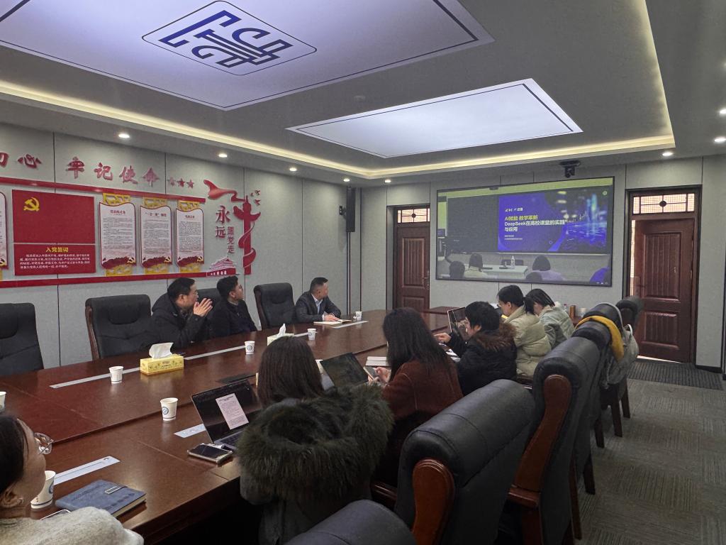 为帮助教师尽快掌握 AI 工具教学应用、构建人机协同课堂、 提升教学效能,3月6日下午,法学院组织院全体教师参加由教务处组织召开的“DeepSeek+AI 工具赋能高校教师教学”专题培训,此次培训采用线上线下混合模式,无教学任务的教师在4-307会议室集中参训,其他教师通过直播回放完成学习,实现全员覆盖。