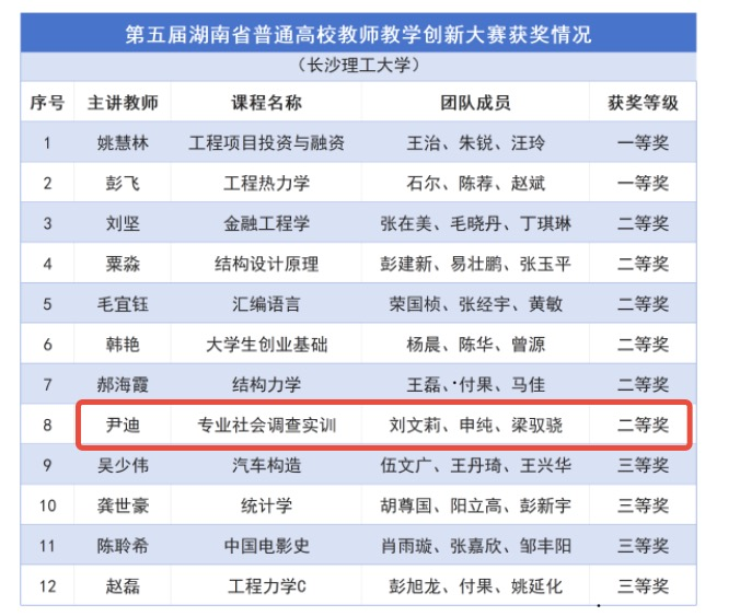 喜报!尹迪老师团队荣获第五届湖南省普通高校教师教学创新大赛二等奖