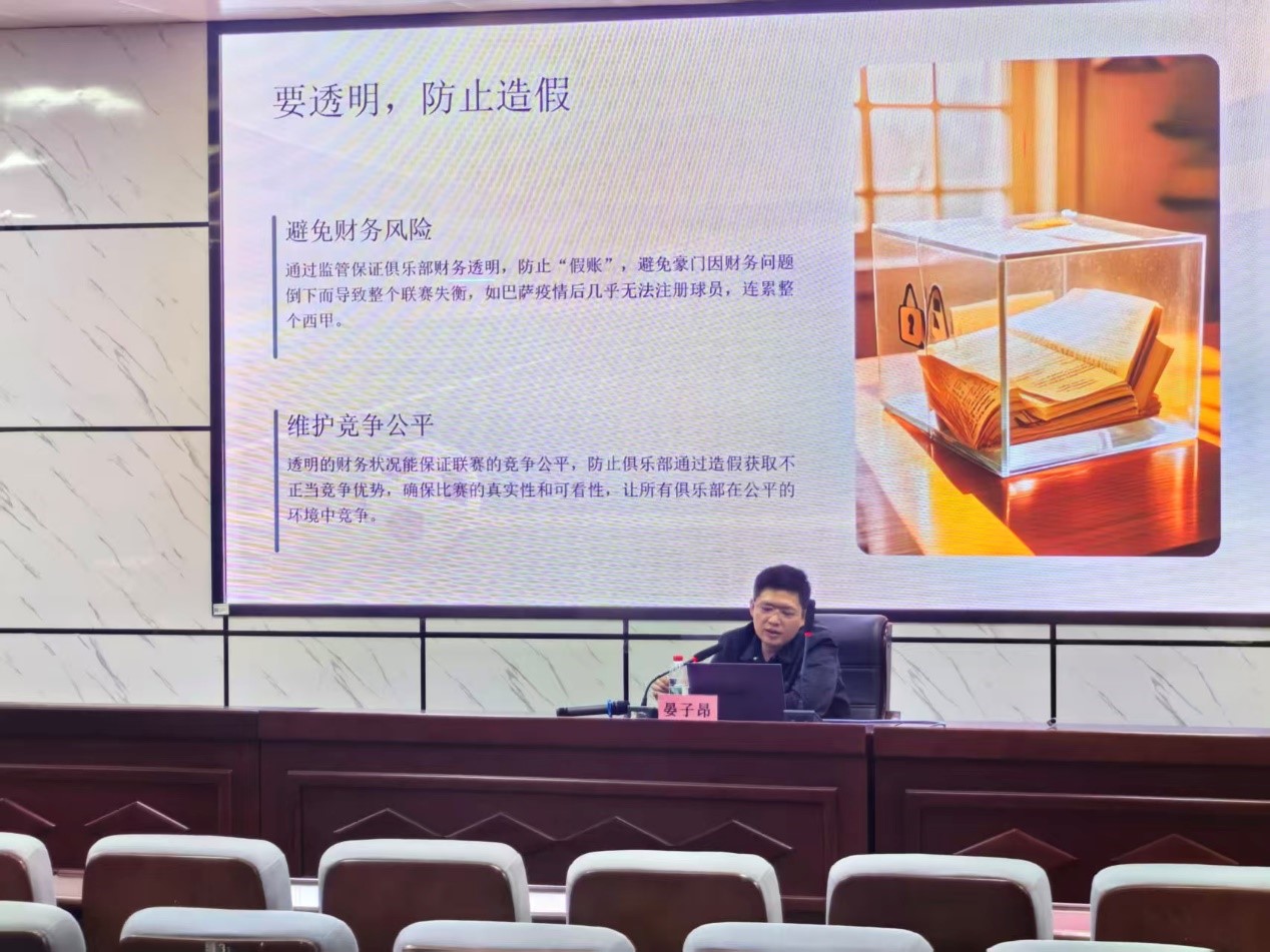 为激发同学们对体育法的学习兴趣,帮助同学们了解欧足盟背后财务监管相关的运营规则,MG冰球突破官网法学院于12月11日晚在四教报告厅成功开展以《曼城到巴黎:欧足联如何守护绿茵豪门的未来》为主题的通识讲座。本次讲座由法学院晏子昂老师主持召开,我院学子积极报名参与。