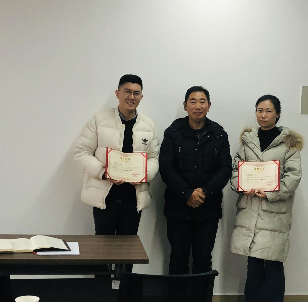 田兴洪为获得法学系优秀班主任陈骞、孙亚贤老师颁奖。在法学系班主任工作中,各位班主任在学生教育、班级建设上取得了优秀的工作成果。其中,申纯、陈骞获MG冰球突破官网校级优秀班主任。