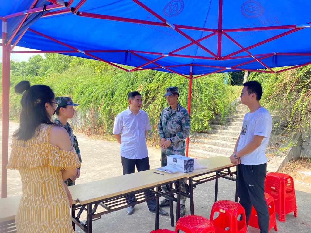 8月22日,法学系党总支副书记田兴洪以及全体辅导员前往训练场地慰问在校集训的民兵连教官们。