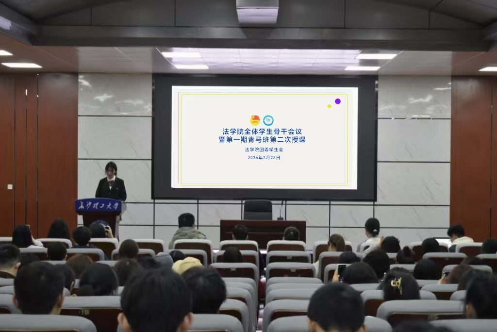 2月28日晚,法学院全体学生骨干会议暨法学院第一期青马班第二次授课在四号教学楼报告厅顺利举行。院党委副书记汪伦出席此次活动并为全体学生骨干授课,院团委书记兰贵辉、辅导员曾宇欣,学院研究生会、团委学生会、党建中心及自管会全体学生骨干100余人参加此次会议。