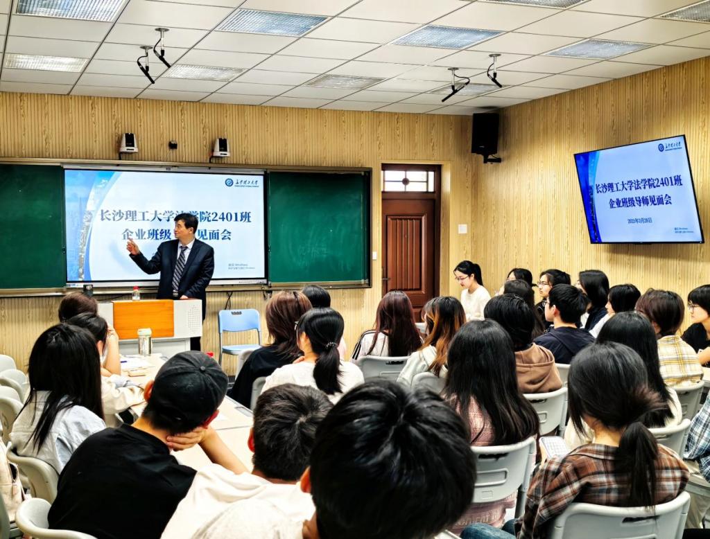 为促进学生理论知识与社会实践的深度融合,为法学教育注入新活力。3月26日下午,法学院在四教305组织开展了法学2401班第一次班级企业导师见面会。法学2401班企业班级导师湖南海川律师事务所主任刘立新律师出席,班级全体同学参加。
