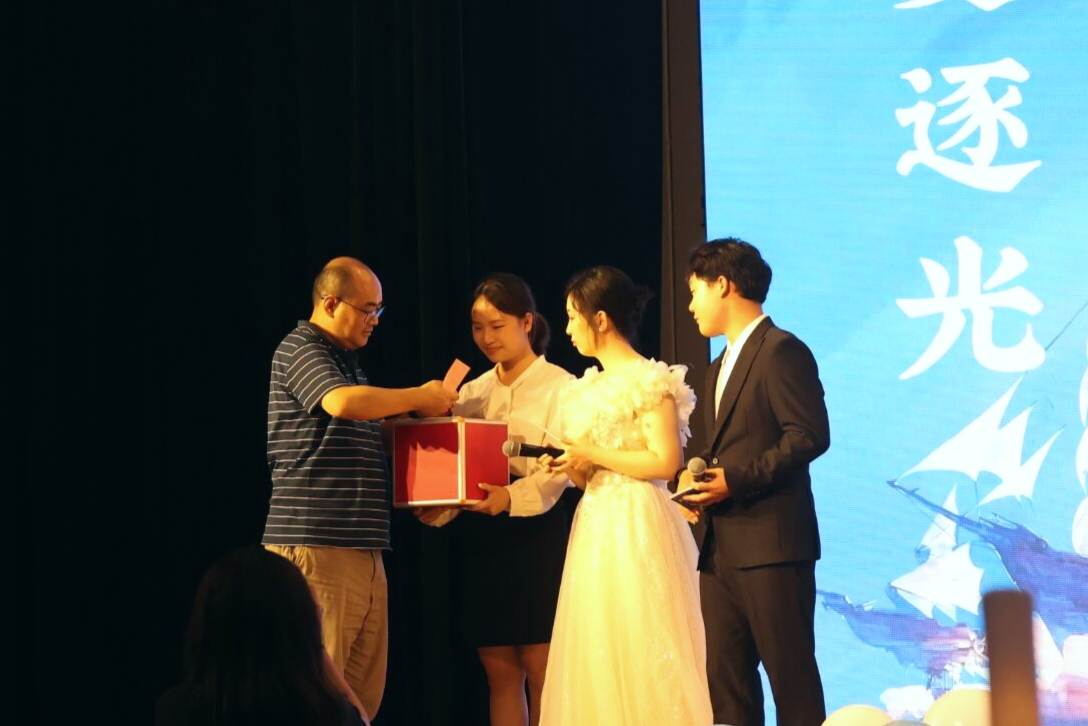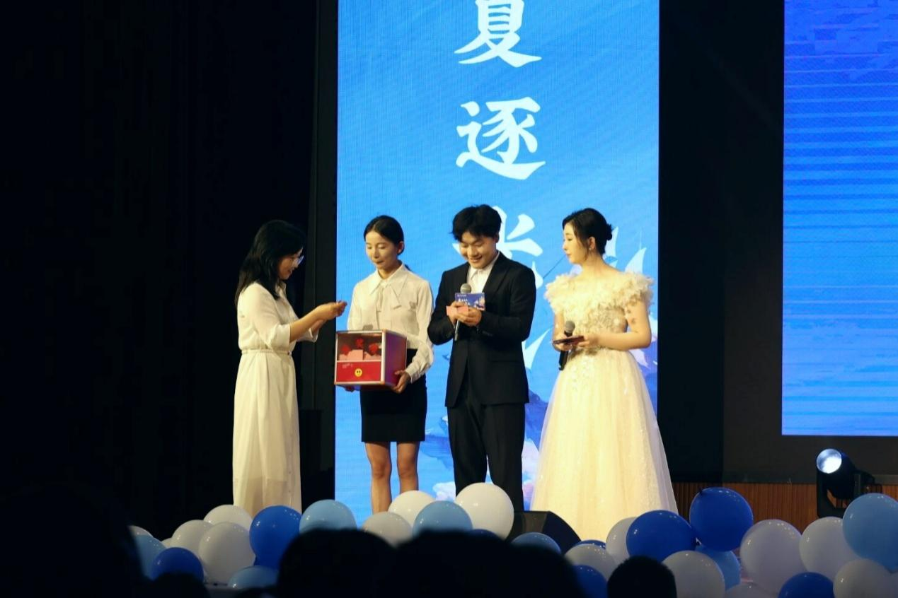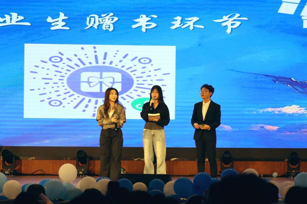 随着晚会的推进,现场的气氛愈发高涨。观众们以热烈的掌声和欢呼,表达他们对演出的认可和喜爱。晚会中还特别设置了 “抽奖环节” 和毕业生赠书环节,为现场的同学们送上了精美的礼物,带来惊喜与欢乐的同时,也增添了现场的互动性和趣味性。