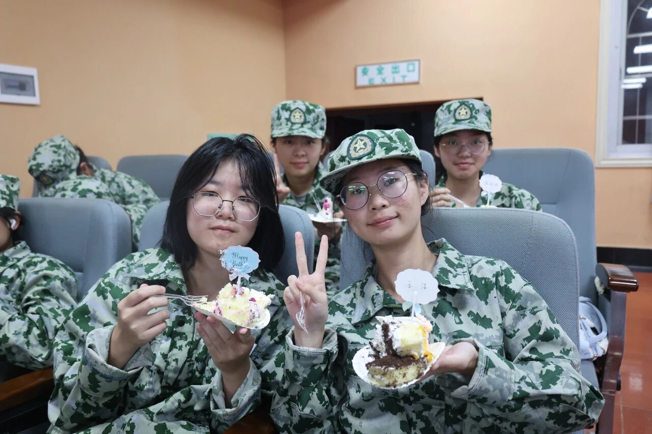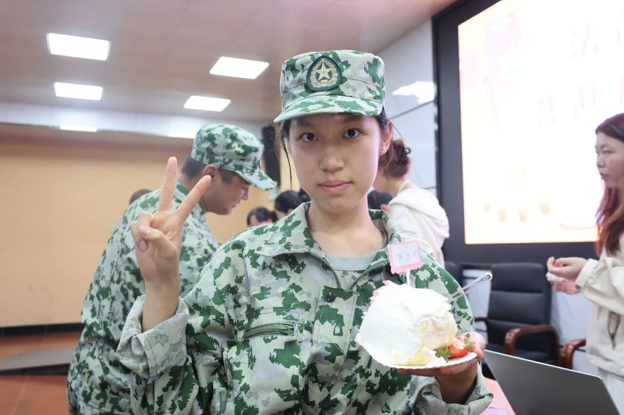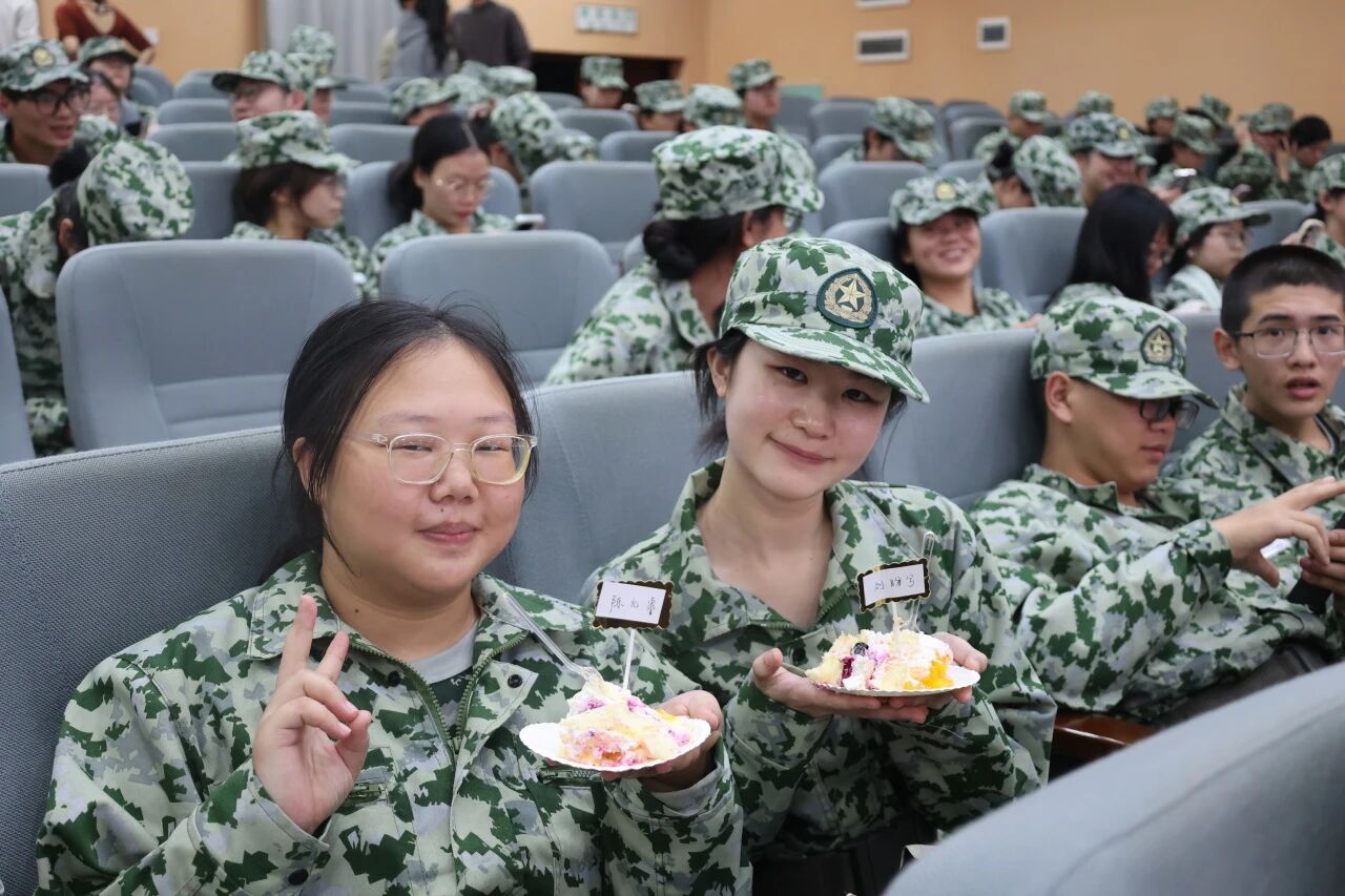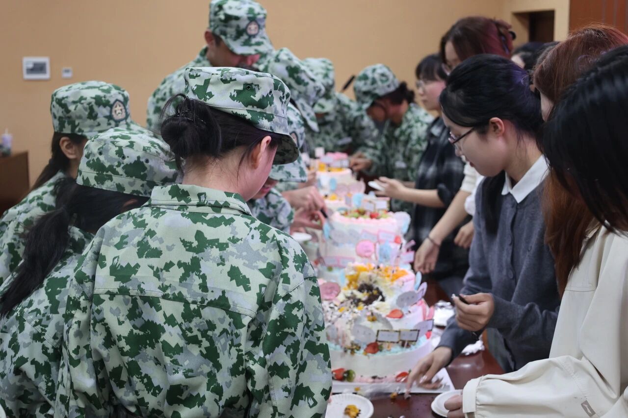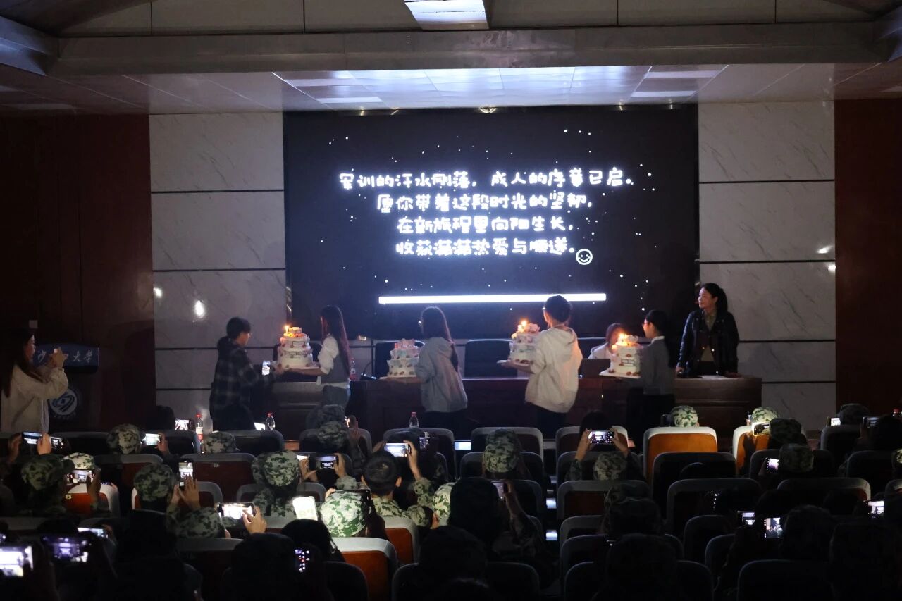 当会场灯光骤灭,军训回忆视频开始播放,写满全体新生姓名的蛋糕被缓缓推至舞台中央,掌声、惊呼、手机闪光汇成海洋,此刻他们才惊觉:学院“密谋”了一场专属成人礼。蛋糕上的每一个名字,都是学院对“个体”的珍视;而共同切开蛋糕的瞬间,则是“集体”的凝聚。