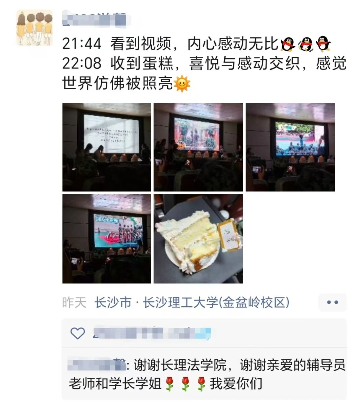 蛋糕被分成179块,每一块都镌刻着不同的名字,但咬下的每一口都是相同的温暖——在这片光影与甜蜜交织的氛围里,陌生感被打破,友谊在悄然滋生,“校园即家”的感觉,就这样融进了每一口蛋糕的甜意里。