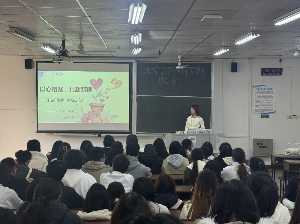 为帮助学生快速适应新学期学习生活节奏,筑牢校园心理安全防线,营造积极向上、团结友爱的班级氛围,法学院于2026年3月10日至3月13日,组织各班级有序召开“以心相聚,共赴新程”健心主题班会。本次班会由各班心理委员主持,引导全体学子卸下心理包袱,以健康、昂扬的心态迎接新学期、奔赴新征程。