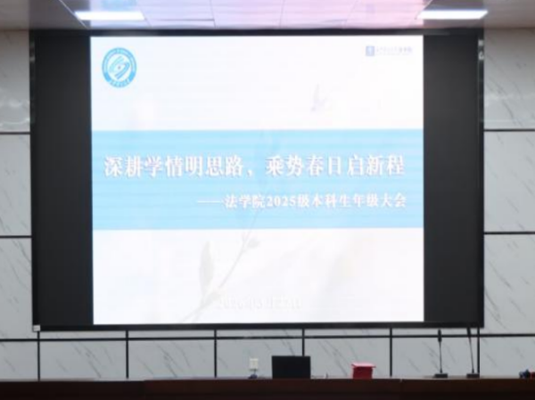 2026年3月27日下午,MG冰球突破官网法学院2025级本科生年级大会在四教报告厅举行。本次会议以“深耕学情明思路,乘势春日启新程”为主题,从第一学期成绩分析、未来规划、学习经验分享和优秀同学表彰四个方面开展,助力法苑学子夯实学业基础、锚定前行目标,以更昂扬的姿态迎接下一阶段的学习生活。