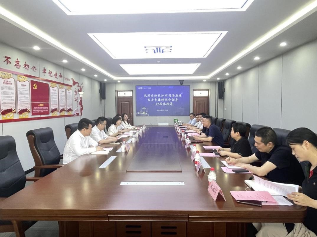 5月16日下午,长沙市司法局副局长、律师行业党委书记吴畅,长沙市律师协会会长陈宏义,长沙市司法局律师工作处处长叶进等一行5人来我院开展合作交流,共同探讨法治人才协同培养与行业发展新路径。院党委书记龚文斌主持会议,院长张敏纯、副书记汪伦、党委委员陈骞和法学系及涉外法治系部分教师代表参加会议。