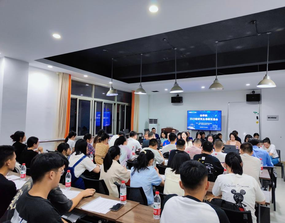 为深化落实研究生与导师互选工作机制,2023年9月20日晚19:30,法学院在四号教学楼506教室召开了2023级研究生导师双选会,会议由学院全体研究生导师和2023级研究生新生参加,徐莉副院长主持会议。
